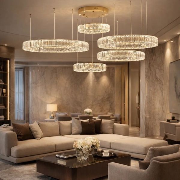 Mẫu đèn pha lê hiện đại 5 vòng đặc biệt phù hợp với: